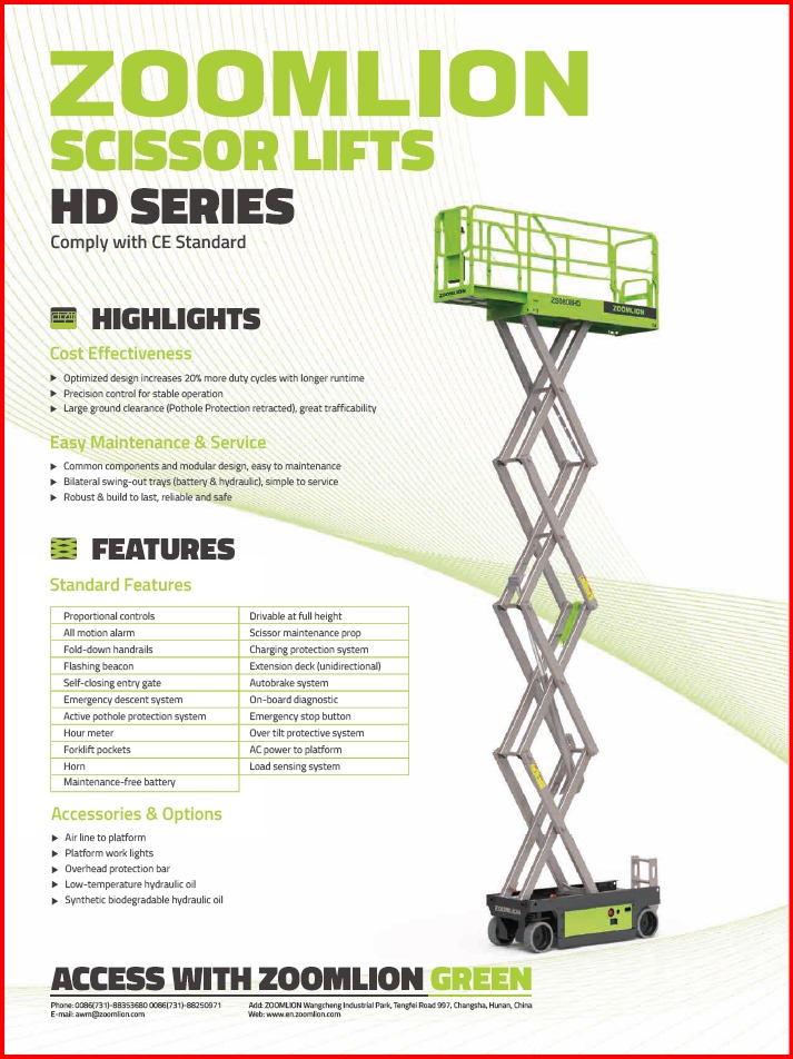 Zoomlion Scissor Lifts, available through ShunXing Hardware and Storage Engineering Pte Ltd, represent cutting-edge technology in aerial access equipment. Designed for efficiency, safety, and versatility, Zoomlion scissor lifts are ideal for a wide range of industrial and commercial applications.